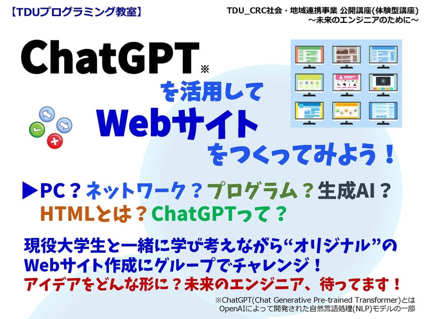 東京電機大学は、小学5・6年生向けのワークショップ「ChatGPTを活用してWebサイトを作ろう!」を3月9日に開催します。