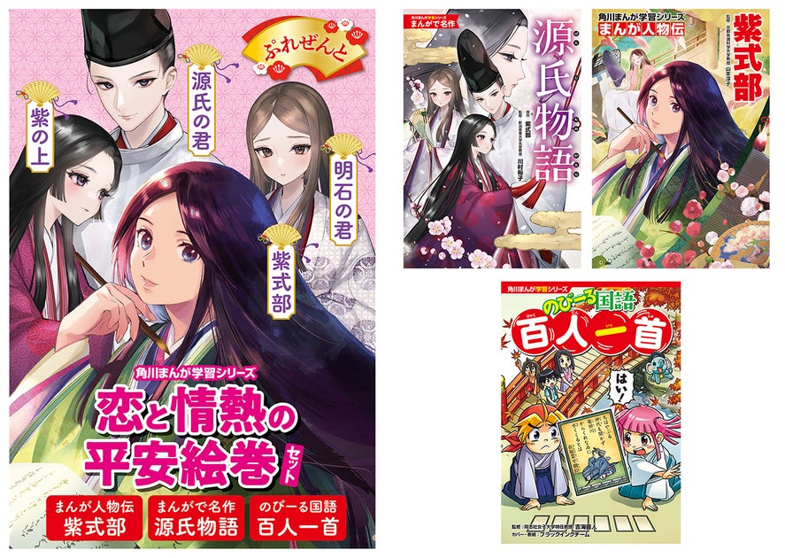 - まんが人物伝 紫式部、まんがで名作 源氏物語、のびーる国語 百人一首