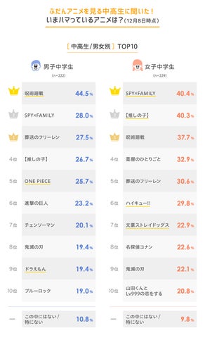 - 「呪術廻戦」と「SPY×FAMILY」が人気のアニメ作品として挙げられた