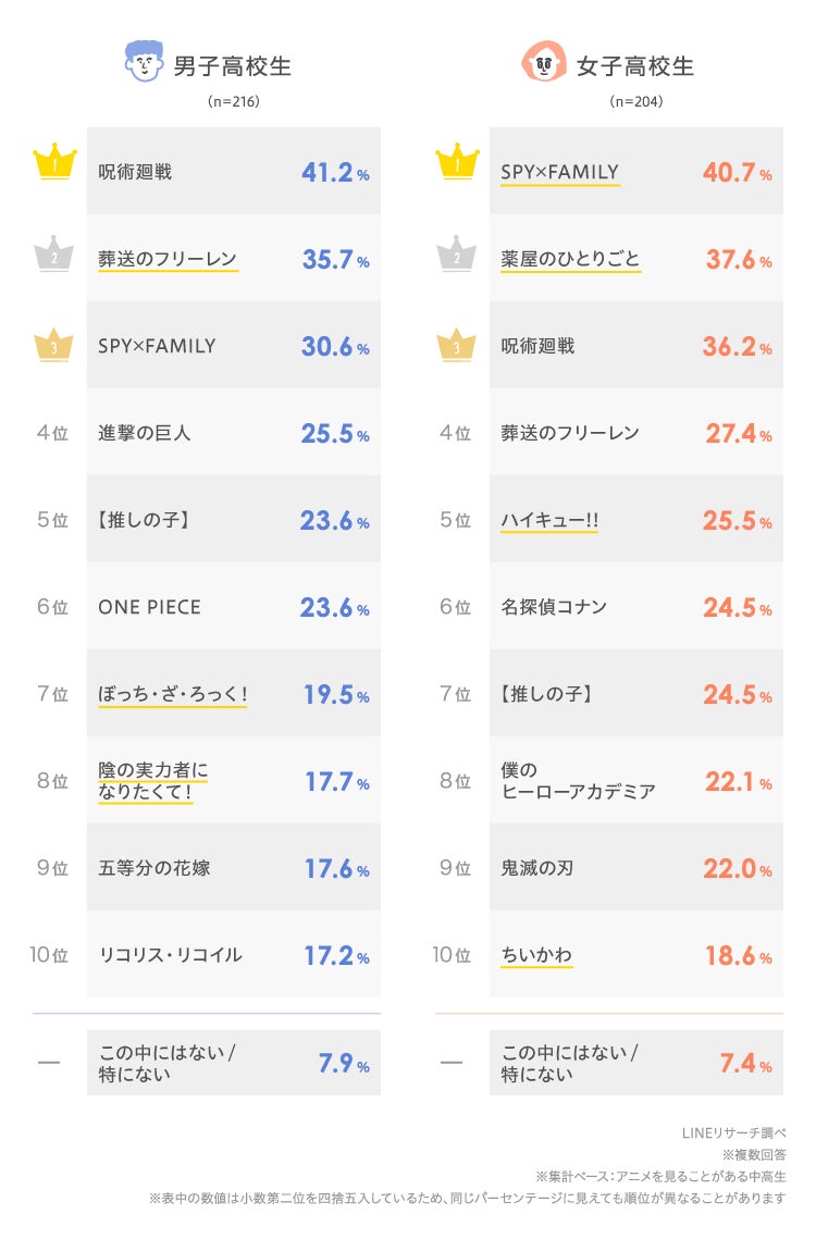 また、人気のアニメ作品として「呪術廻戦」と「SPY×FAMILY」が挙げられました。