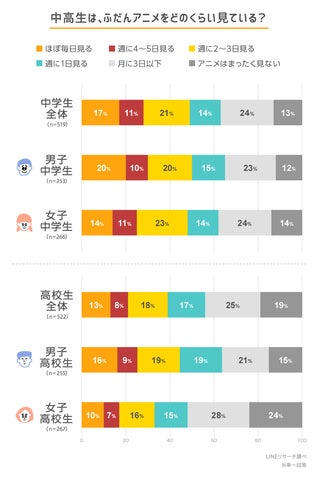 最新の調査によると、中学生と高校生を対象にしたアニメ視聴に関する調査を行いました。