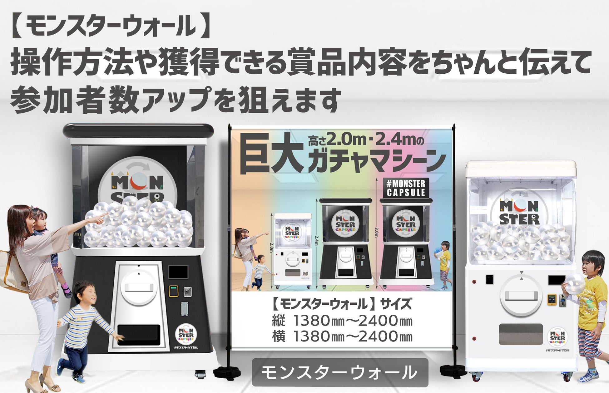 さらに、2023年には屋内設置に適した巨大ガチャ「モンスターカプセル2.0m」のレンタルも開始されました。