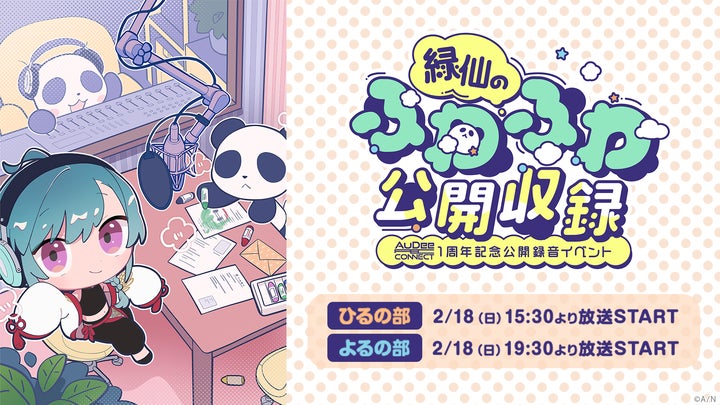 2024年2月18日(日)に、緑仙の初の公開録音イベント『AuDee CONNECT1周年記念公開録音イベント〜緑仙のふわふわ公開収録〜』が開催されます。