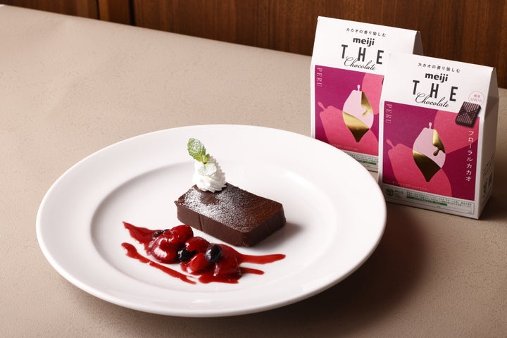 メニューには、明治のカカオ本来の香りと味わいを楽しめるデザートとドリンクが含まれます。