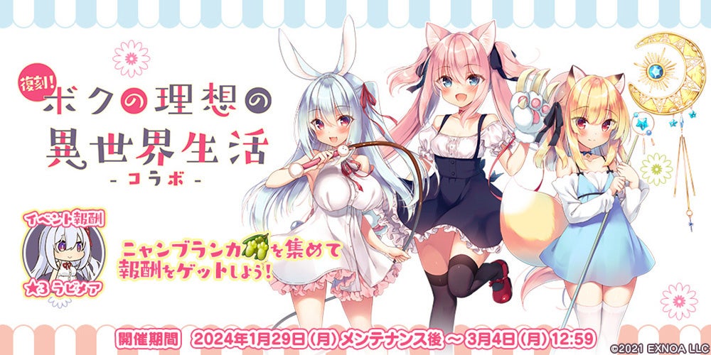 - 2024年1月29日から3月4日まで「ボクの理想の異世界生活コラボ」開催