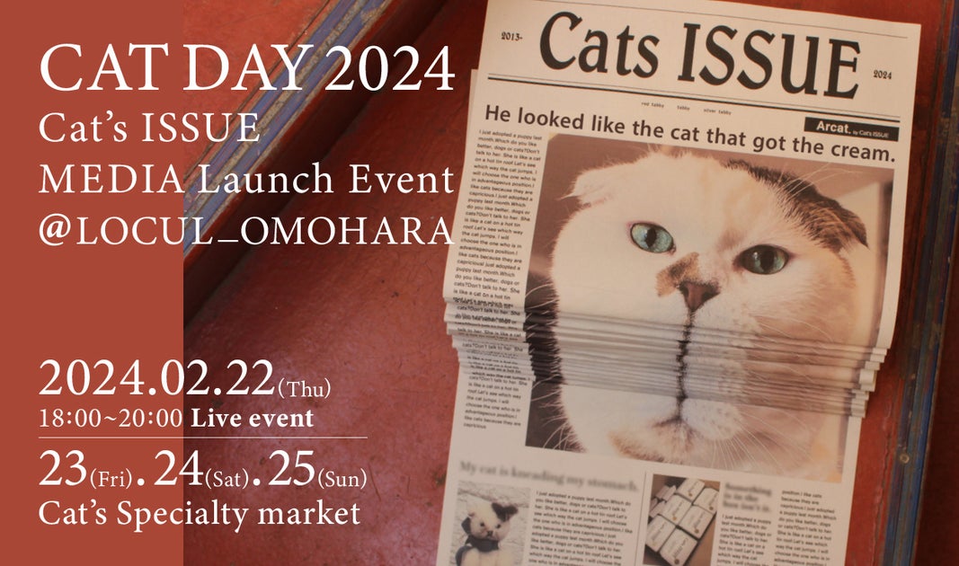「Cat’s ISSUE」というプロジェクトが主催する「CAT DAY 2024 -Cat’s ISSUE MEDIA Launch Event-」の開催情報をお知らせいたします。