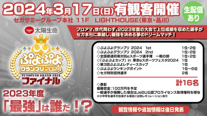 東京eスポーツフェスタ2024におけるセガ公式大会「ぷよぷよカップ」の結果をご報告いたします。