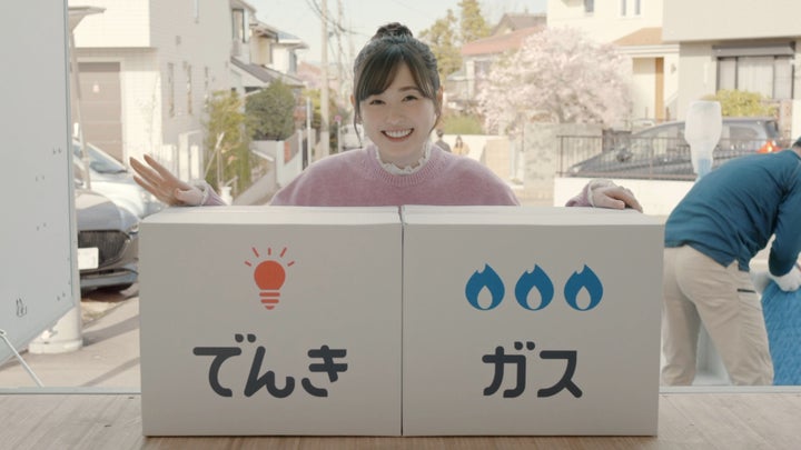 福原遥さんが出演する「引越し篇」では、引っ越しをする福原さんが、電気・ガスの手続きをまとめてお得にできることを紹介しています。