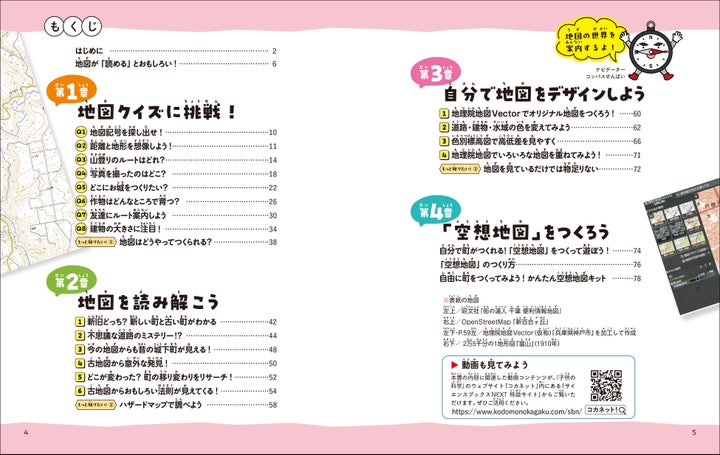 また、地図の情報を読み解くページでは、今と昔の地図を比較することで何がわかるのかを謎解き形式で楽しむことができます。