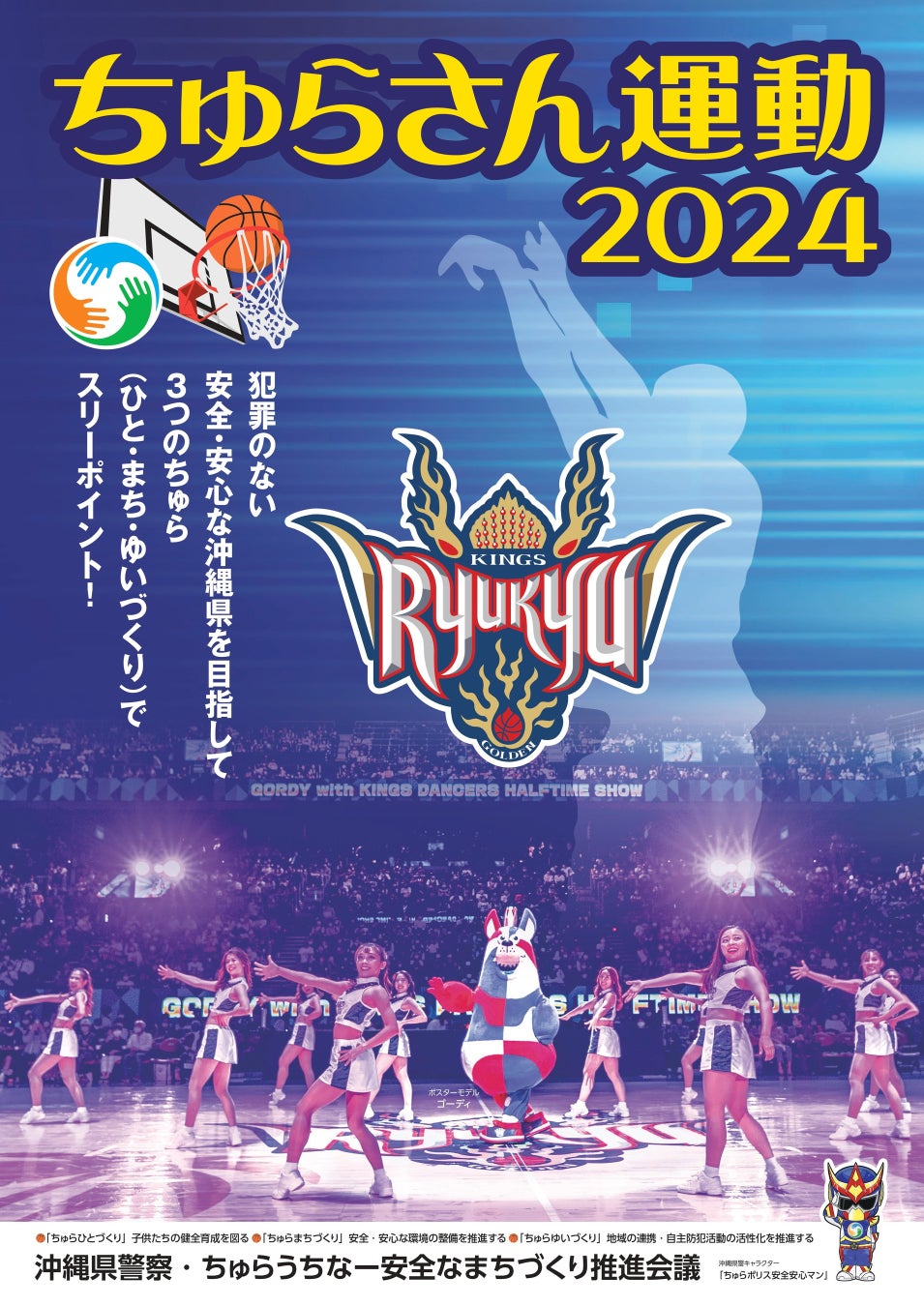 琉球ゴールデンキングスのマスコットキャラクター「ゴーディー」が、沖縄県警察本部が配布する「ちゅらさん運動2024」の広報用ポスターに起用されました。