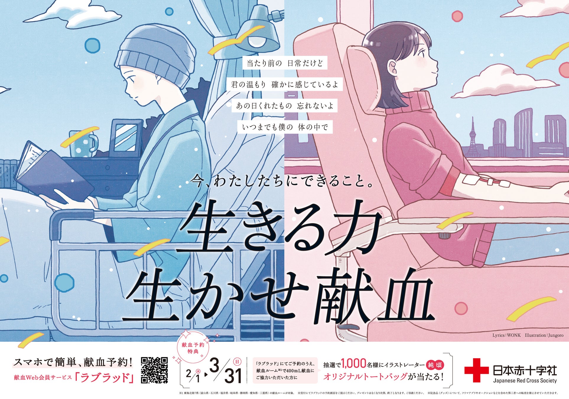また、2024年2月1日(木)から3月31日(日)までの期間、献血web会員サービス「ラブラッド」で400mL献血にご協力いただいた方を対象に、抽選で1,000名様にイラストレーター純頃オリジナルトートバッグをプレゼントします。