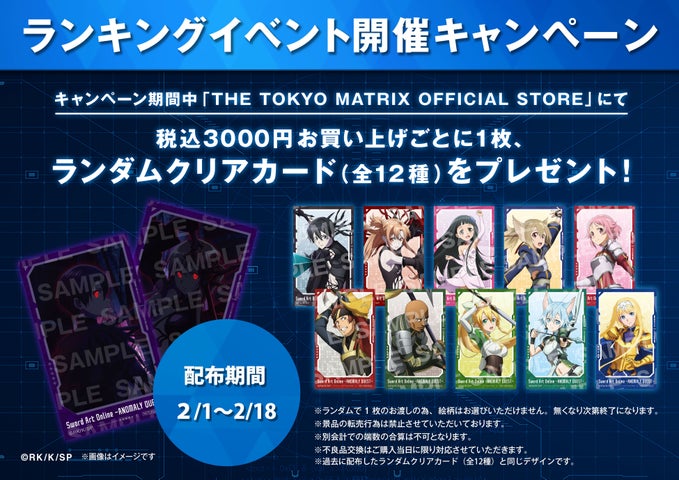 • イベント期間中に「THE TOKYO MATRIX OFFICIAL STORE」でグッズを購入すると、ランダムクリアカードがプレゼントされる