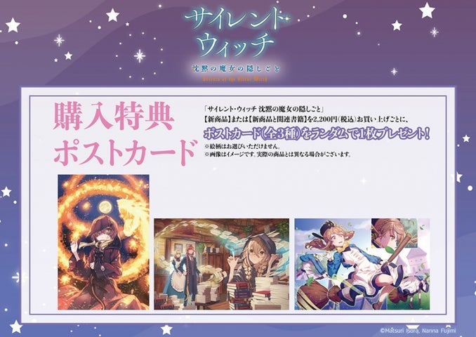 会場内で「サイレント・ウィッチ」関連商品を2,200円以上購入すると、特典ポストカードがランダムで1枚プレゼントされます。