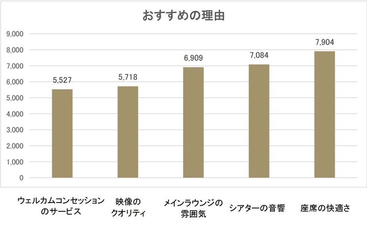 アンケート結果では、座席の快適さやシアター音響、ラウンジの雰囲気が高評価を得ております。