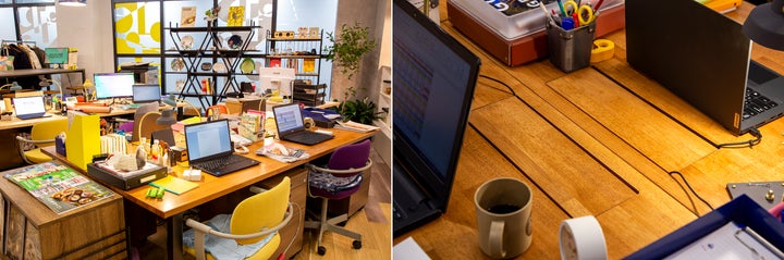 - オフィスはサステナブルな素材を使った製品制作の事業を展開し、自由な雰囲気で従業員同士のコミュニケーションが捗るようなあたたかみのある空間になっている