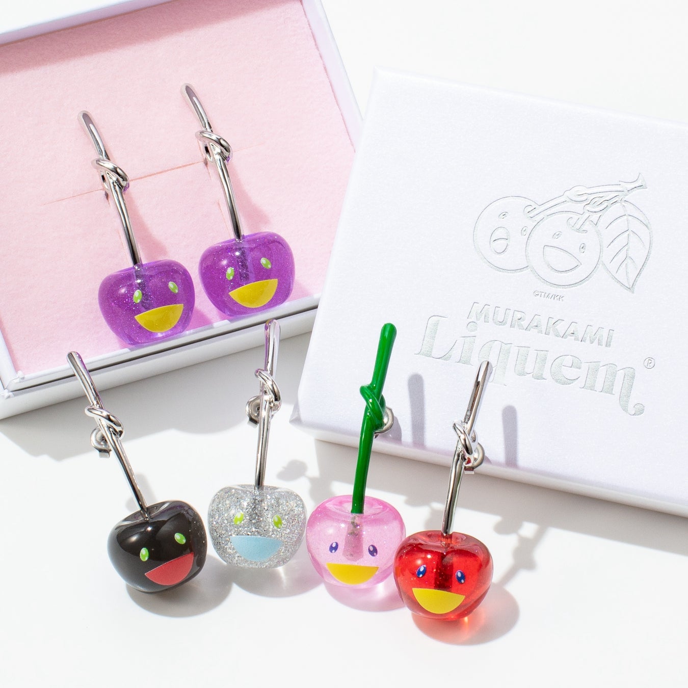 今回は「チェリーブロッサム」「フラワー」「チェリー」という3つのモチーフのアクセサリーが発売され、村上隆さんのキャラクターが箔押しのBOXに入っています。