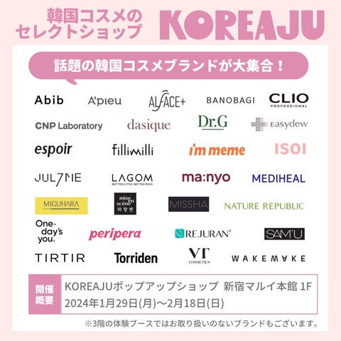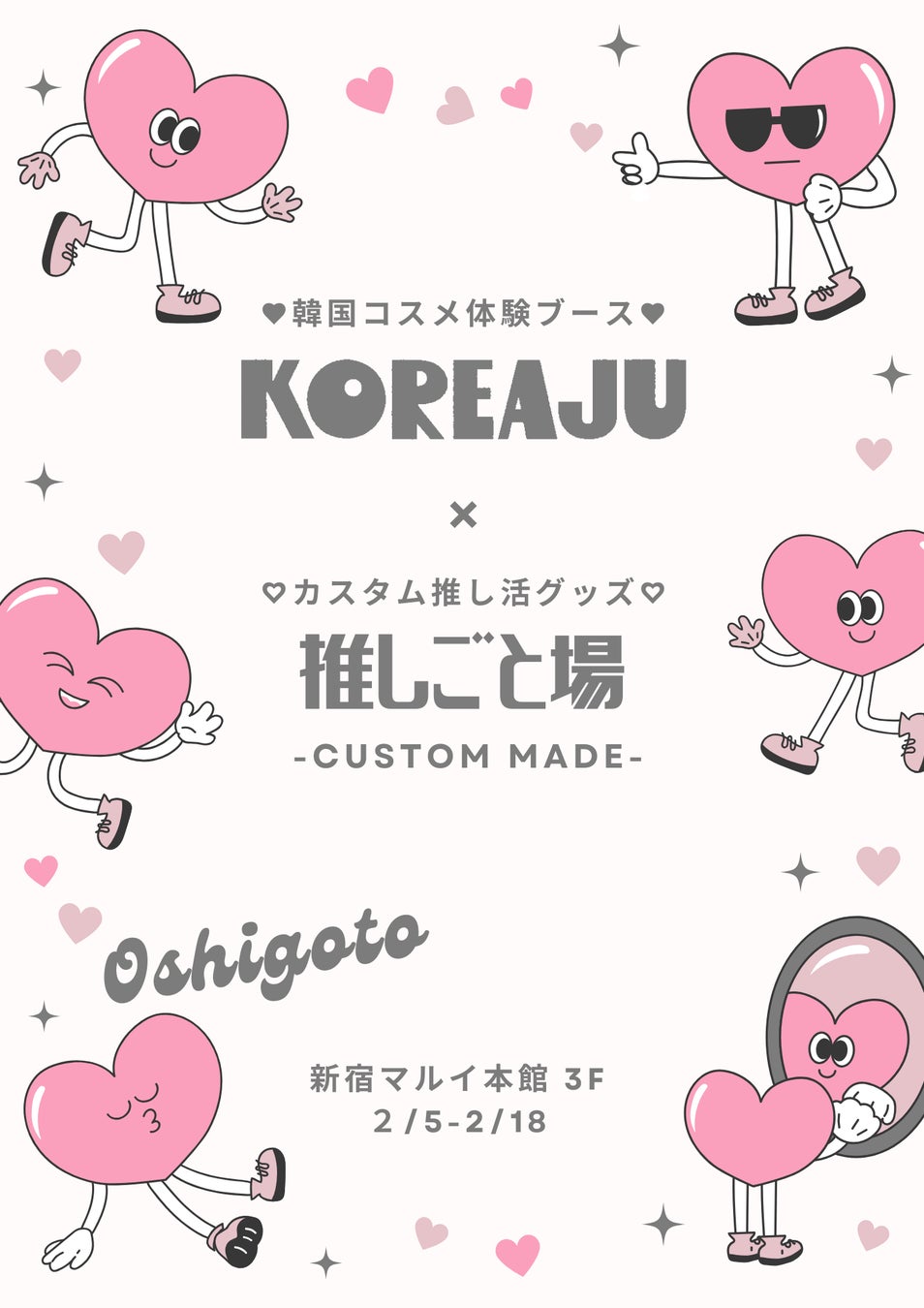 - 「KOREAJU×推しごと場 CUSTOM MADE」は、韓国コスメを試すことができる体験ブースや、推し活を楽しむためのグッズや役立つアイテムが集まる期間限定イベントです。