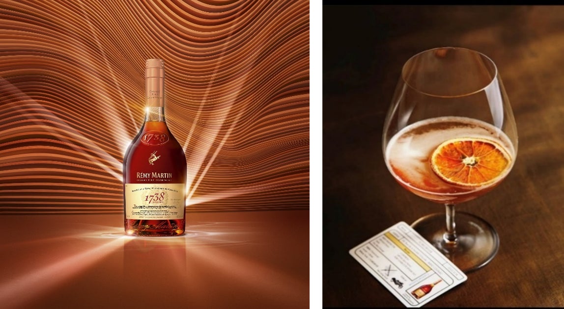 このカクテルは、レミーマルタン1738アコード・ロワイヤルをベースにしており、滑らかさとオークの香りが魅力です。