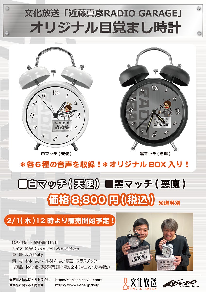 - 近藤真彦RADIO GARAGE番組オリジナル目覚まし時計を販売開始
