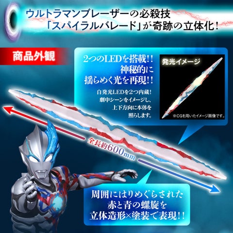 - 全長約600mmの大きさで、光る槍「スパイラルバレード」を再現