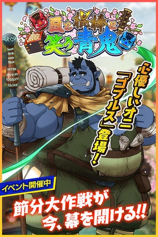 節分イベント「豆と棍棒と笑う青鬼」が開催されます!イベントクエストをクリアすると、SR魂友「ゴブルス」や様々なアイテムが手に入ります。
