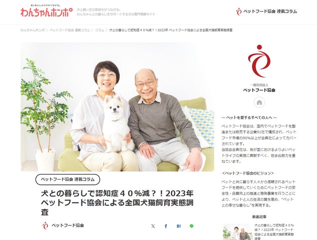 株式会社ピーネストジャパンと一般社団法人ペットフード協会は、犬のメディアわんちゃんホンポで「ペットフード協会 連載コラム」を開始しました。