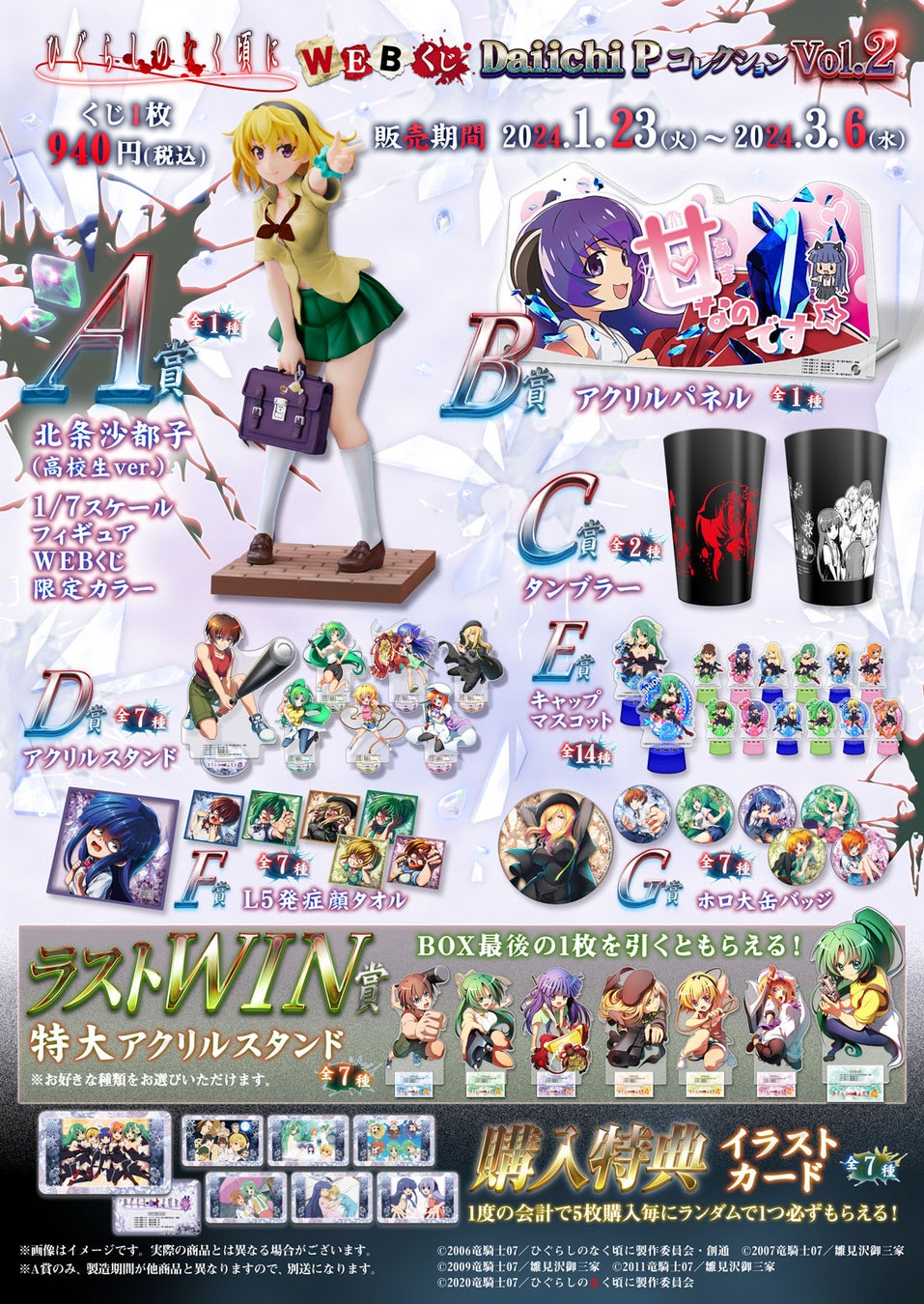 - 大一商会が開発した「ひぐらしのなく頃に」シリーズの限定グッズが当たるオンラインくじが開催される