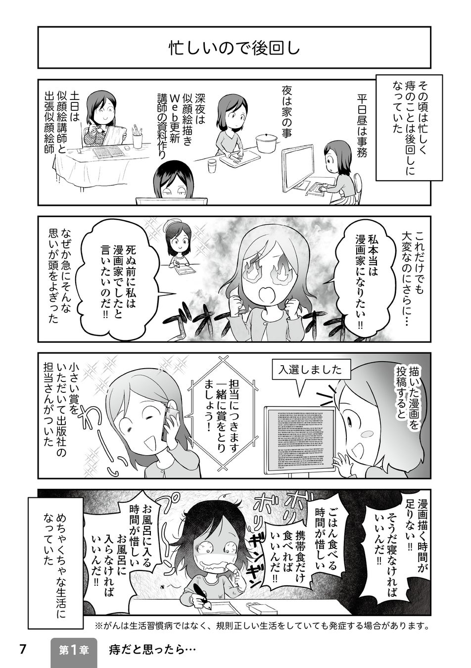この作品は、37歳の主人公がお尻からの出血を痔だと勘違いし、放置していたら大腸がんステージ4であることが判明しました。