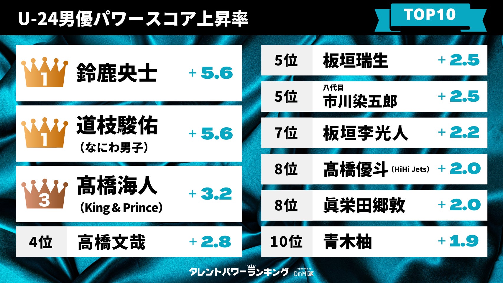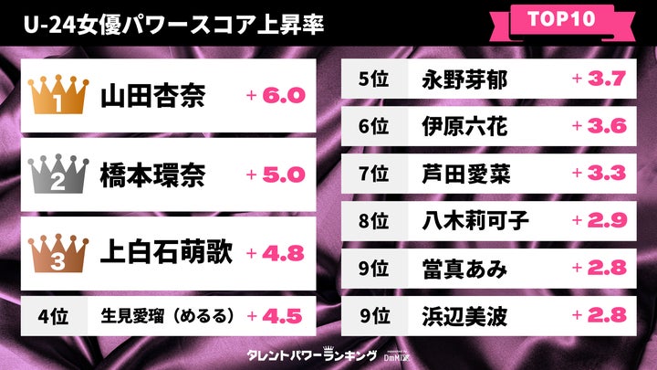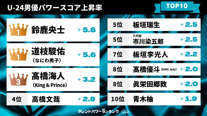 - 24歳以下の男優女優の上昇ランキングに焦点を当てています。