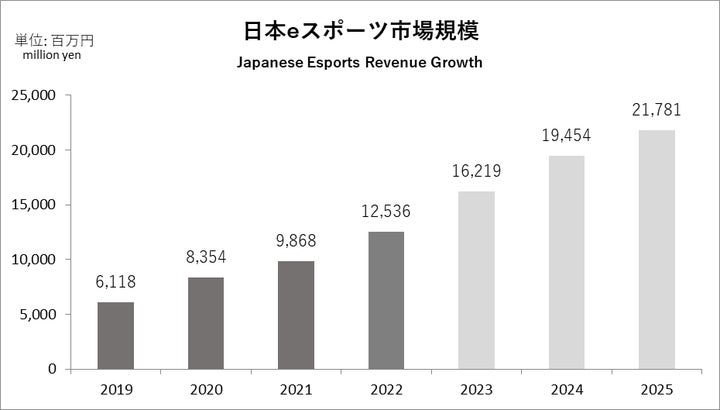 - 日本のeスポーツ市場は急成長し、2022年には125億円に達し、2025年まで年平均20%の成長率で拡大予測