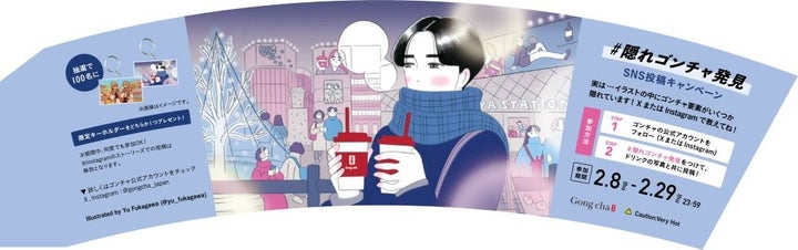 人気イラストレーターとのコラボレーションで、ゴンチャと一緒に冬のひとときを過ごすシーンを描いたイラストが採用されています。