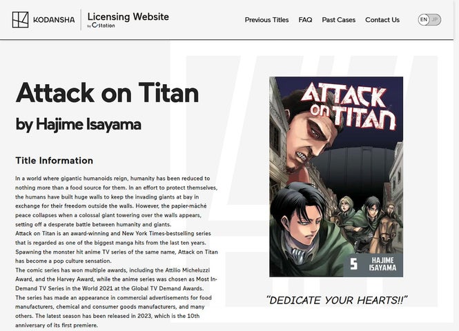 講談社は、日本のマンガやアニメの人気が世界中で広がっていることに対応するため、公式ライセンシングインフォメーションサイト「Kodansha Licensing Website」を立ち上げました。