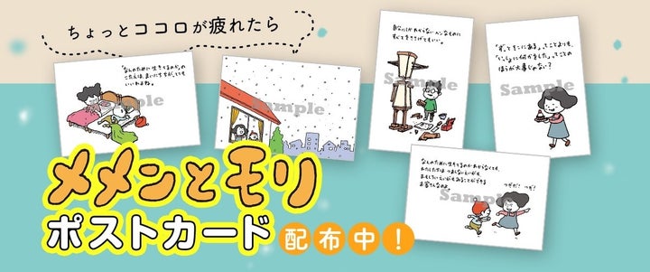 さらに、『メメンとモリ』のポストカードが配布されており、全5種類のポストカードをPDFファイルとしてダウンロードすることができます。