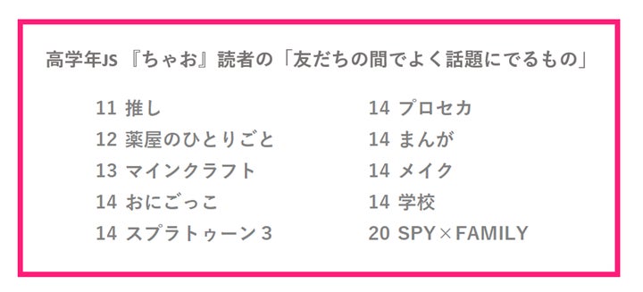 - 『ちゃお』のアンケート結果から、2023年下半期のJSトレンドを紹介