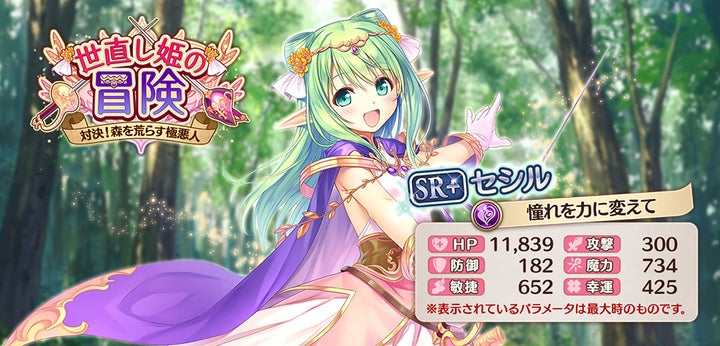 また、イベント『世直し姫の冒険 対決!森を荒らす極悪人』も開催中で、報酬としてSR+セシル【憧れを力に変えて】や記念家具が手に入ります。