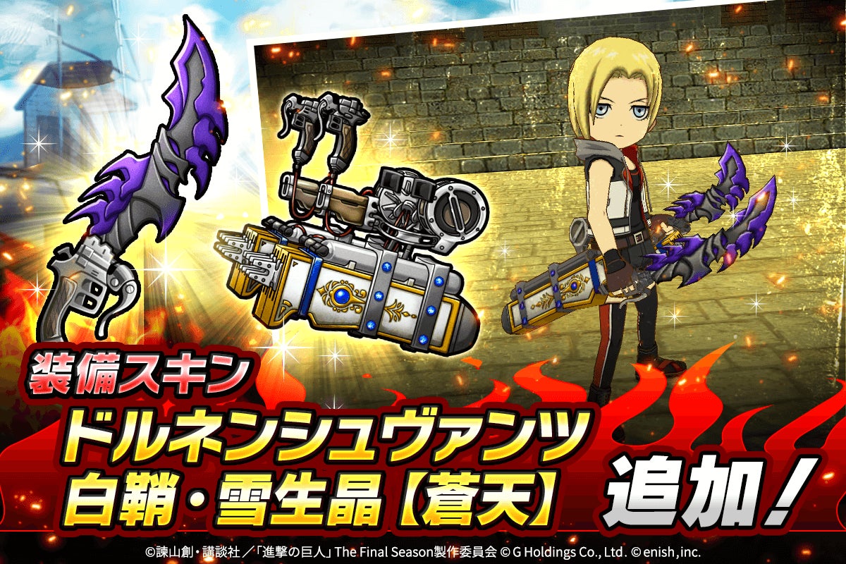 また、ウォール・ローゼ防衛戦には「異形の巨人 摩虎羅」が登場し、新たな装備スキンも追加されました。