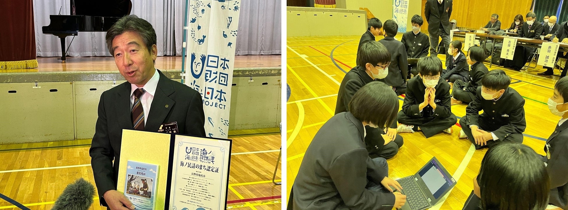 彼は海ノ民話のまちプロジェクトに関わる皆様に感謝の意を表し、この認定を街づくりに活かしていくことを約束しています。