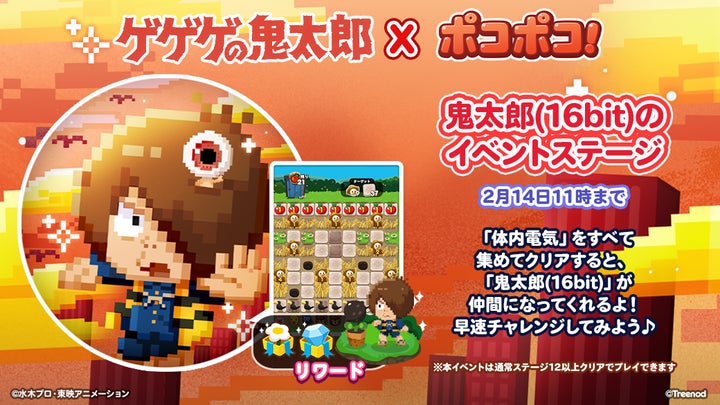 LINEヤフー株式会社は、人気の3マッチパズルゲーム「LINE ポコポコ」とアニメ『ゲゲゲの鬼太郎(第3期)』のコラボレーションイベントを開催します。
