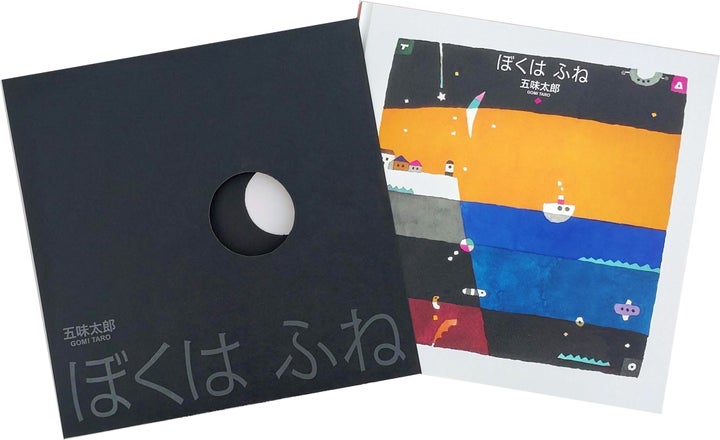 『ぼくは ふね』の特別な装丁は、五味さん自身によるもので、黒いスリーブから本を取り出すと、小さな船が海へ出航するように見える装丁になっています。