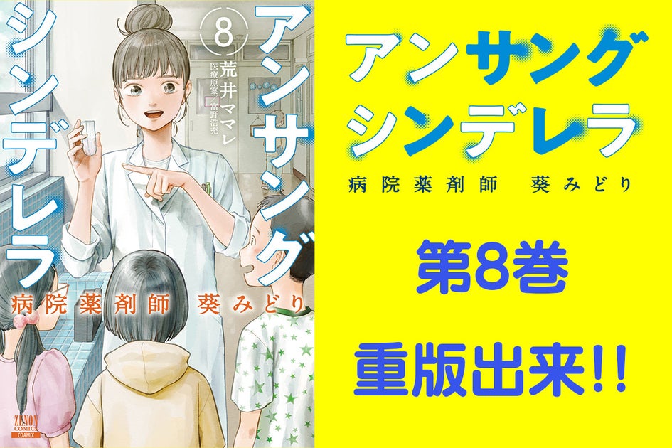 - 株式会社コアミックスから『アンサングシンデレラ 病院薬剤師 葵みどり』第8巻の重版発表
