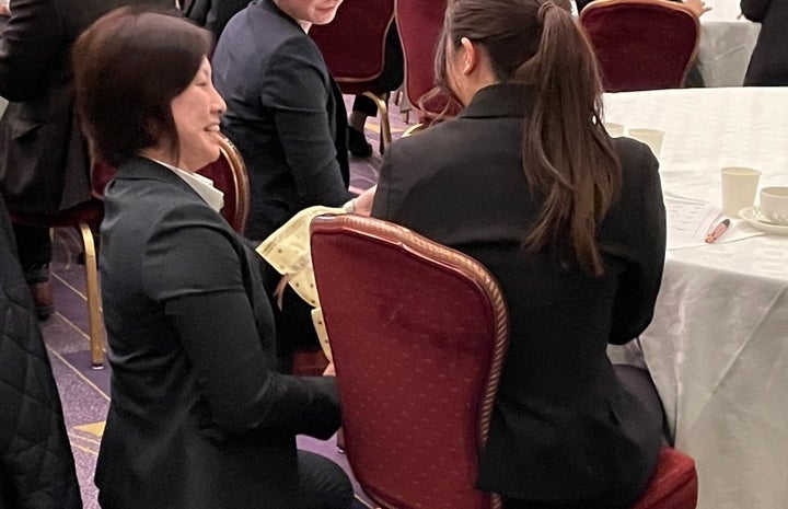 彼らは岡山の吉備団子を配布し、会場全体を巻き込むプレゼンテーションを行いました。