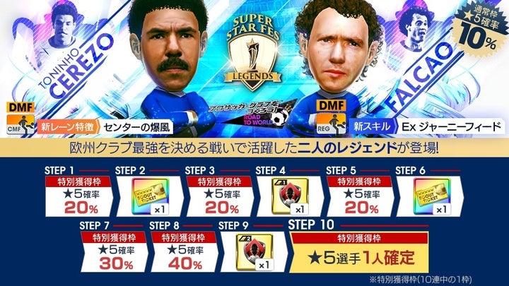 • 新イベント「SUPER STAR FES LEGENDS」でレジェンド選手の「トニーニョセレーゾ」と「ファルカン」が新★5選手として登場