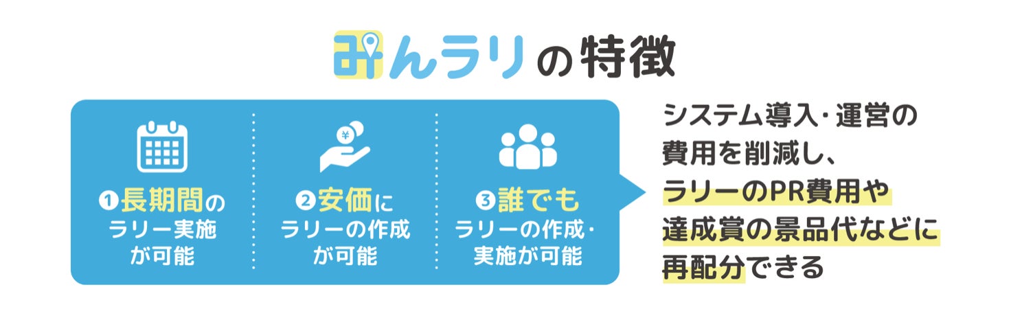 - 「みんラリ」は長期間のラリー実施や安価なラリー作成が可能で、誰でも利用できる