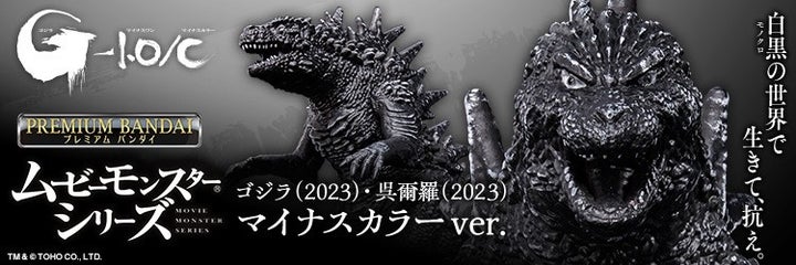 ムービーモンスターシリーズより「ゴジラ(2023)」「呉爾羅(2023)」が、劇中の最恐なモノクロ姿のフィギュアで登場。