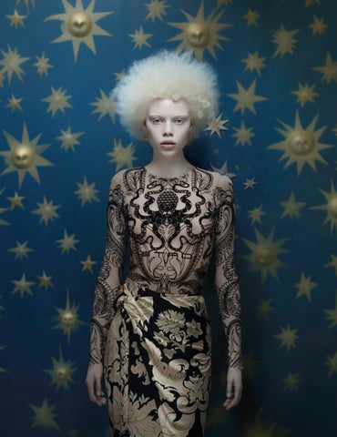 幻想的な世界や新しい建物、成長する植物が描かれ、モデルも異星人のような印象を与えます。