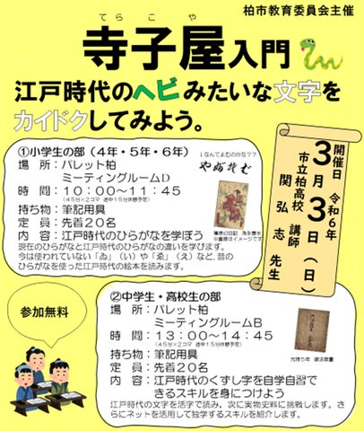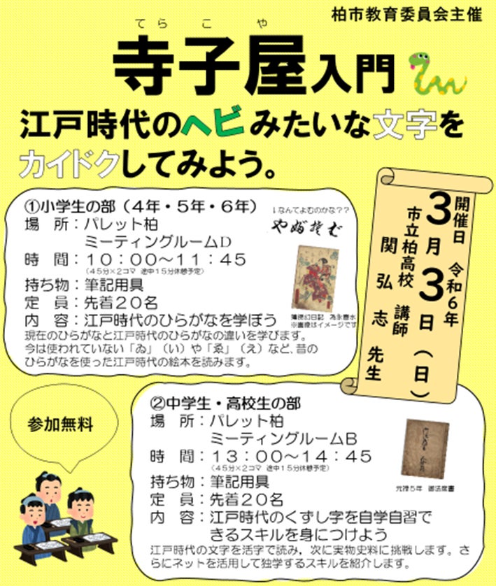 - 中学生高校生の部のイベント: 江戸時代のくずし字を学ぶ