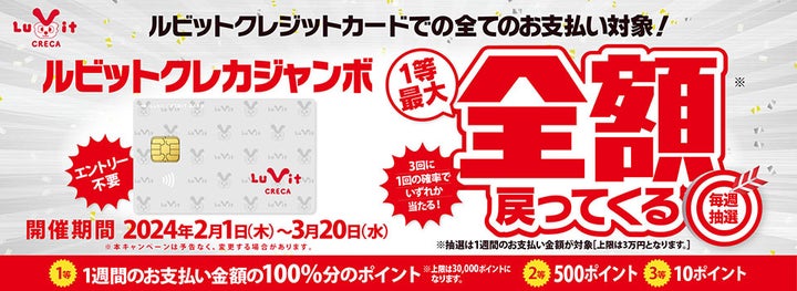 - ルビットクレジットカードのキャンペーン「ルビットクレカジャンボ」が2024年2月1日から実施