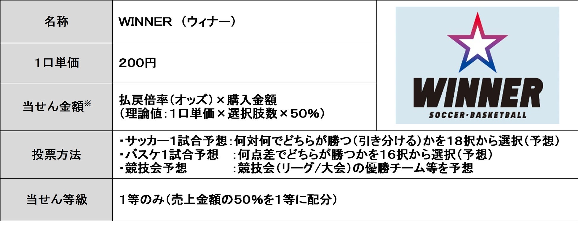 - B.LEAGUEや海外サッカーを対象とした予想くじも販売中