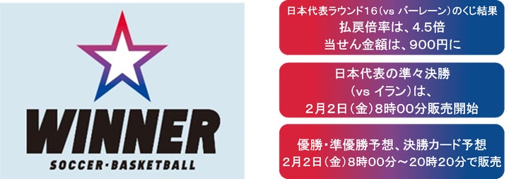 JSCは、サッカーアジアカップの全51試合を対象とした「WINNER(ウィナー)」という予想くじを販売しています。