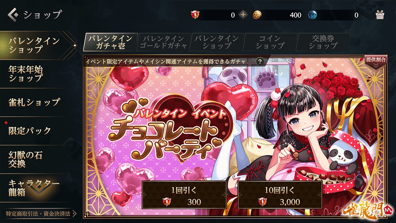 エヌ・シー・ジャパン株式会社は、PCとスマートフォン向けの美しい3D麻雀ゲーム『雀龍門M』にて、1月31日から「バレンタインイベント チョコレートパーティ」を開催します。